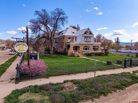 The Historic Wrightsman House, a rare Residential or Commercial Opportunity in the heart of Mancos, CO. The Wrightsman House sits on 8 city lots and offers versatile use for residential, commercial, or mixed purposes. The main level features a spacious open layout with a dining room, billiards area, library and a large kitchen. The second floor includes 4 private bedrooms, 3 bathrooms, and a sunroom overlooking town. The top-floor penthouse features a private kitchen, bath, and stunning views — ideal for guests or rental income. Exterior amenities include a 1-car garage, workshop, 2 carports, RV pad, gazebo, hot tub, and a generous yard. The home is heated by a gas boiler with radiator system. Basement offers hookups for 2 washers and 2 dryers. Major system updates completed in 2023: new electrical (outlets, switches, fixtures) and extensive plumbing replacement. Listed on the National Historic Register. Potential for historic preservation grants. Some furnishings are included. The property is 10 minutes to Mesa Verde National Park, 30 minutes to Durango, 45 minutes to Durango-La Plata Airport, 1 hour to Purgatory/1.5 hours to Telluride for world class skiing, 2 hours to Moab, and 20 minutes to Dolores and Cortez, where you will find all the modern services and conveniences. Rare find with flexible use and historic charm — a must-see in downtown Mancos.