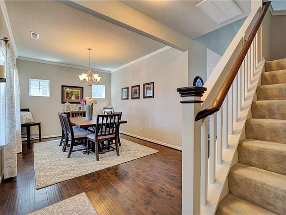 Better than new! This beautiful, impeccably kept home includes all the expensive items that aren't included with new construction. You'll love the upgraded ceiling fans & light fixtures, custom drapes & blinds, & the fenced-in yard with green grass! The spacious, bright floor plan features a gorgeous eat-in kitchen with huge center island, fantastic special-order appliances & granite counters. Wood floors throughout the 1st-floor flow from the dining room to the amazing kitchen & into the open family room with 2-story ceiling & gas fireplace for comfortable living & entertaining. The 1st-floor bedroom & full bath offer separation from the other bedrooms making it perfect for guests. The master suite features a lofted ceiling, big walk-in closet & large private bath with double vanity, soaking tub & lovely tiled shower. Two additional bedrooms, hall bath with double vanity & upstairs laundry room round out the 2nd floor. Enjoy your backyard patio & neighborhood paths & playground too!