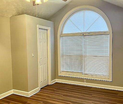 Each of the four bedrooms offers generous space and comfort, including a large primary suite with vaulted ceilings, a stunning arched window, and plenty of closet storage. Both bathrooms are well-appointed, with the main bath showcasing tiled walls and a tub/shower combo.