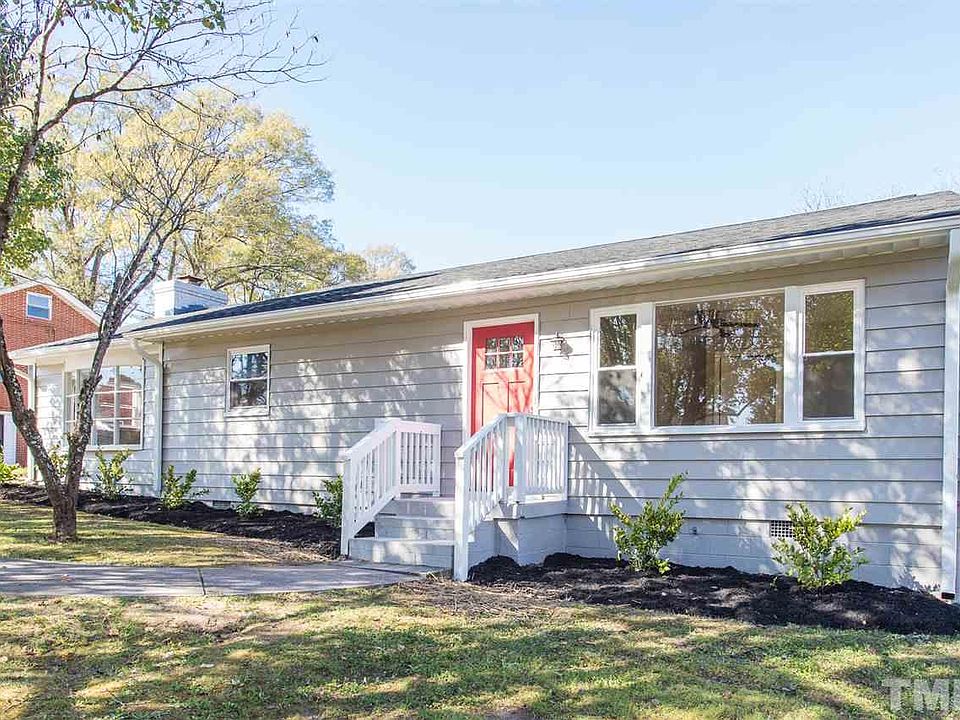 GORGEOUS One Level Living with a bright open floor plan and upgrades galore! This 3 bed plus Office/Flex Home features a custom designer kitchen with granite countertops, glass tile back splash & Stainless Steel appliances. Beautiful hardwoods, and NEW LVT flooring, & designer paint. NO CARPET! Large back yard and detached storage shed. No HOA dues. Convenient to RTP, Downtown Durham and Duke. Move in and enjoy!