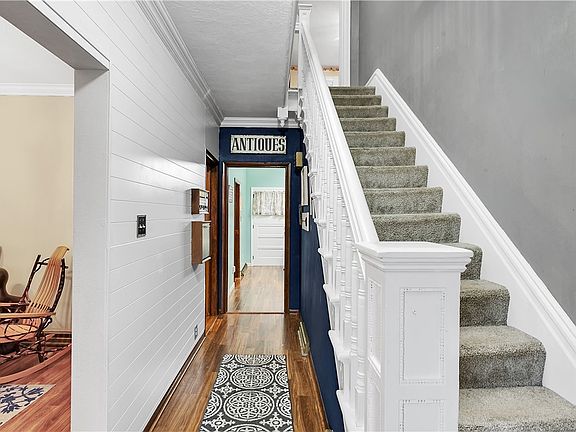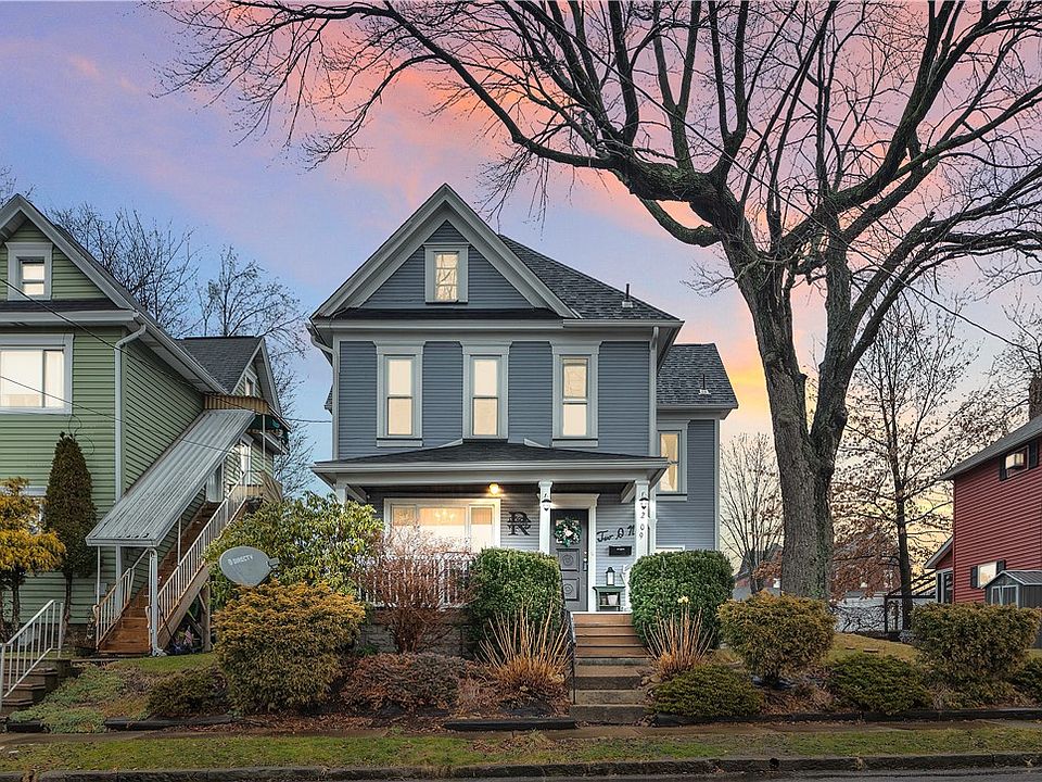 The view is as priceless as the memories you'll make watching fireworks from your own front porch. This expansive home boasts a new roof, flat fenced-in yard & a freshly painted exterior creating the best of first impressions. Inside, natural light flows through the picture window of the living room as well as the abundance of windows in the formal dining room. Crown molding flows throughout, & the newer laminate underscores the main floor. You'll love the convenience of the laundry room & full bath both located on the first floor. The expansive eat-in kitchen offers plenty of cabinet space, & the home warranty includes an appliance discount program so that you can easily upgrade! Upstairs, each bedroom is larger than the next! A walk-up finished attic with walk-in closet provides the ideal potential 4th bedroom, out-of-the-way office, playroom or storage space - let your imagination run wild! There's so much to see & even more to love...