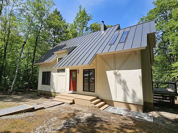 Beautifully updated Contemporary nestled on a private wooded lot abutting Pats Peak Ski Area, offering year-round comfort, space, and flexibility. This 3-bedroom, 3-bath home is perfect as a full-time residence, seasonal getaway, or multi-generational living with in-law suite potential. This move-in ready home provides room to grow. As you enter the home you through the foyer, you are greeted by the large open-concept great room featuring soaring cathedral ceilings, floor-to-ceiling windows, and a cozy wood stove The main level features brand-new luxury vinyl plank flooring, a spacious eat-in kitchen with granite countertops, a large center island, and a private deck overlooking the peaceful backyard. The first-floor primary bedroom includes a walk-in closet and attached full bath for convenient single-level living. Upstairs, you'll find two additional bedrooms, an oversized ¾ bath with laundry hookups, and a cozy reading nook overlooking the great room. The fully finished walk-out lower level offers its own private entrance, a second living room with wood stove, a bonus room with closet, and additional laundry hookups, making it perfect for guests or extended family. Property is being offered with an additional 2.04 acre adjoining buildable lot see MLS #5045066 .. Nearby skiing at Pats Peak Henniker is well know for kayaking the rapids & Fly fishing. Easy commute to Concord and Manchester. Open House 6/28 Sat 12-2, Sun 6/29 10-12
