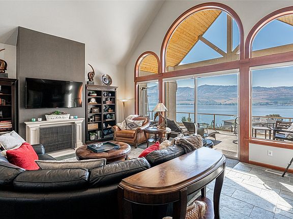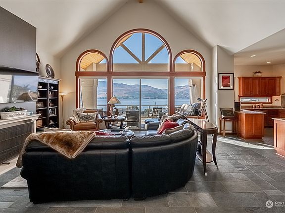 Beautifully appointed one level living in desirable Crystal View Estates community waterfront. Vaulted beamed ceiling and wood wrapped windows showcase the amazing Lake Chelan Views throughout this custom designed home. Gas fireplace and slate floors gives this classic and timeless home warmth and comfort for your vacation or year around destination. Chef's kitchen with large center island for entertaining boasts gas range and walk-in pantry. A Spacious primary suite offers big views. Upper level finished loft area has plenty of room for hobbies or extra guests. Impeccably landscaped corner lot allows for privacy while enjoying the sparkling views. Crystal View Estates waterfront enjoys two pools with waterfront access and sport courts.