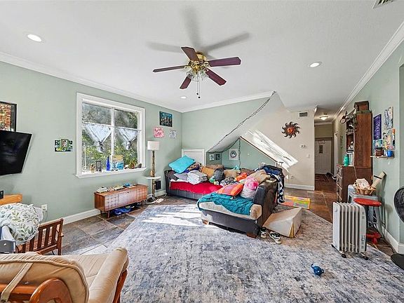 Updated windowsAmple parkingAbundant storage throughoutCustom wood ceilingTwo full kitchensSolid-surface countertopsCrown molding