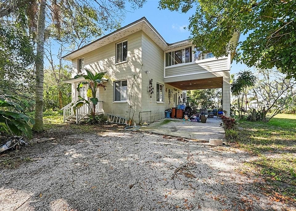 Perfect opportunity in the highly desirable Steinbrenner School District! This unique property offers exceptional flexibility and space, ideal for multi-generational living or future customization. The first floor of the main home features three bedrooms—one with a walk-in closet—two full kitchens, and a spacious 15 x 22 living and dining area, perfect for gatherings and everyday living. The expansive second floor hosts the primary bedroom with en-suite bath, along with a large 28 x 19 open area that can easily serve as an additional bedroom, media room, or bonus space. This level is highlighted by a custom wood ceiling and access to a large screened balcony, creating a warm and inviting retreat. Additional features include crown molding, solid-surface countertops, updated windows, and abundant storage throughout. A detached studio with full bath provides excellent versatility—ideal for guests, a home office, or a craft/workshop space. Situated on nearly half an acre with ample parking, this home offers both space and privacy. The property is a cash only sale and does need a little TLC, making it a great opportunity to add value. Conveniently located near top-rated schools (zoned for Steinbrenner), shopping, restaurants, county parks, and more. Schedule your showing today!