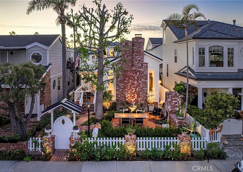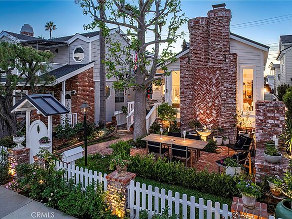 One-of-a-kind three-bedroom Balboa Island cottage offering one of the most exceptional front yards on the Island. The brick-lined garden includes mature landscaping, outdoor dining, a fireplace, barbecue, multiple seating areas, and a storybook tree with a hanging swing, creating a rare extension of everyday living and an ideal setting for relaxing or entertaining. Inside, the first level provides vaulted ceilings, warm living area with fireplace, separate dining space, bathroom, and a beautifully updated kitchen with high-end appliances and walk-in pantry, along with a garage that includes a sauna and private office or den. The second level offers a generous primary bedroom with fireplace, two guest rooms, two bathrooms including one with walk-in shower and freestanding tub, complete with access to an expansive private deck. Fully remodeled with a standing seam roof and thoughtful finishes throughout, this cottage is one of the Island’s most charming homes with outdoor space that is hard to match.