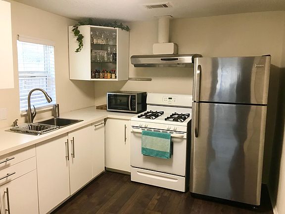 Close to downtown off S. Congress in 78704. 100 year old oak tree, central air & heat, washer & dryer included, frig and microwave provided, new wood flooring, separate storage room in back, yard maintained by owner, walking distance to numerous coffee shops, breweries, close to St. Ed's and automated security gate for driveway. Renter pays for utilities