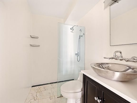 The bathroom has also been renovated with a glass-wall shower, marble flooring and stainless steel basin sink. There is also an adjacent dressing room with a large, mirrored door closet plus 2 additional closets for even more storage.