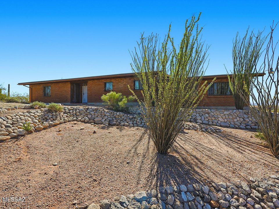 The potential is endless with this ridgetop custom adobe ranch (2 bed, den, 2 bath, 2 car-garage) situated on a .96 Acre Lot with City & Mountain Views! This unique property has a new AC, double sided fireplace in the great room & den, wood beams ceilings and paneled walls in great room, Corian counters in kitchen & spacious bedrooms. All of the carpet except in the primary bedroom has been removed so buyer can add flooring of their choice. Storage room off extended length garage. Huge covered back patio with mountain & city views will be the place to gather and enjoy your Sonoran Desert sunsets. AS-IS Seller to do no repairs. Very close to shopping, restaurants and very short drive to the University! An amazing buy!