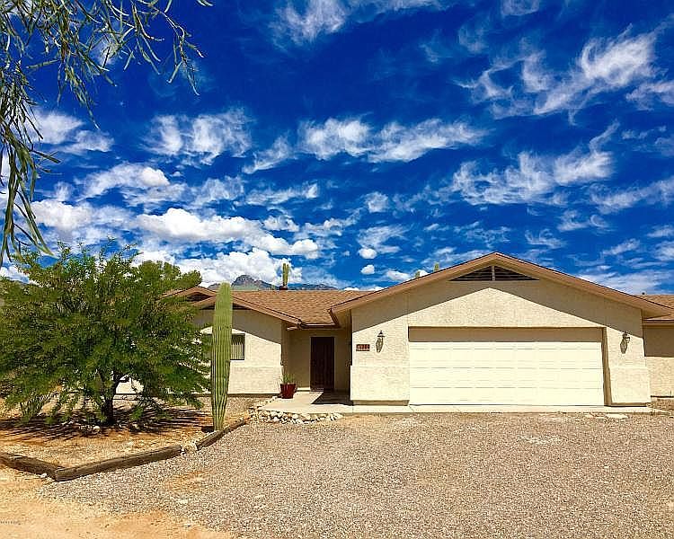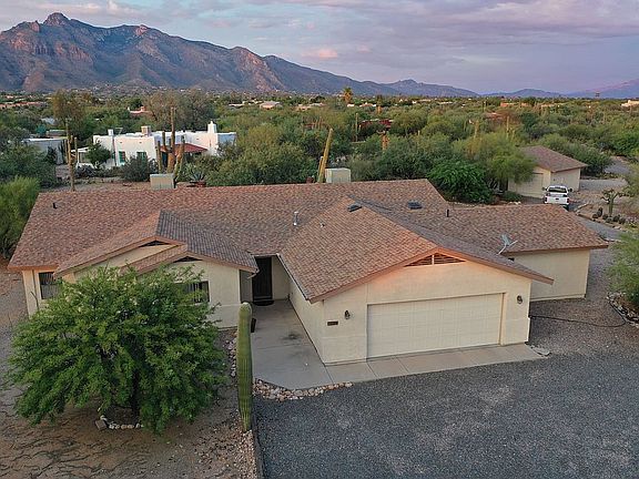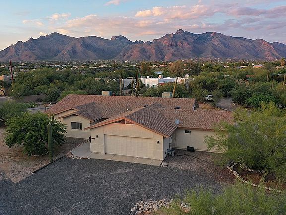 Beautiful Ranch style home with detached Guest house on 1 acre in quiet, rural neighborhood (horse property) located 1 1/2 miles north of Tucson Mall, Catalina Mountain Range Views throughout. Split Floor plan, colored Concrete floors with 2 master suites, 3rd bedroom or office, just remodeled Kitchen, New commercial appliances, stainless steel island, large (6'x8') walk-in Pantry; Main house 2,676 sqft 3 bedrooms, 3 bathrooms + Guest House 735 sqft 1 bedroom 1 bathroom Vaulted Ceilings & ceiling Fans throughout