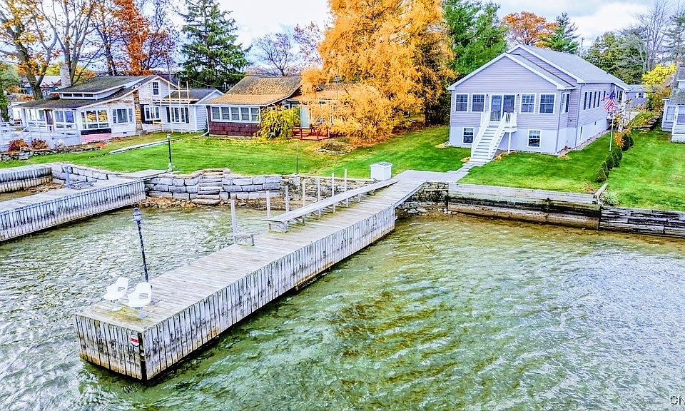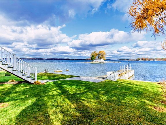 RARE FIND IN CLAYTON!!! Beautiful newer Riverfront Ranch home in the Village with public water and sewer and walking distance to everything! Tucked away peacefully on Emery Ave, a nice quiet dead end street, this 3-bedroom 2 bath home is a true gem! Main channel views and sunsets, permanent dock, nice driveway, large insulated attached garage with TONS of attic storage like I have never seen!! Stunning cook friendly kitchen with oversized dining area, room for a den/sitting area, cozy living room and of course a sweet knotty pine 4 season enclosed porch with amazing views!!! Nice layout with Master bedroom/bath plus 2 guest bedrooms and a guest bath. Lovely mudroom entry/laundry, Heat/AC mini split system and don't forget the HUGE basement that could be further finished and has egress windows with outstanding views of the river! Would make an awesome workshop, 2nd living area/Bar/guest room etc. This beauty is ready to move in and priced right! Call today before it's too late! OWNER FINANCE AVAILABLE WITH $300k DOWN competitive interest rate!
