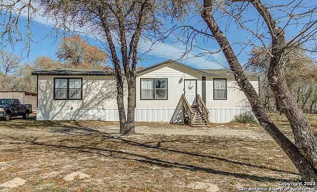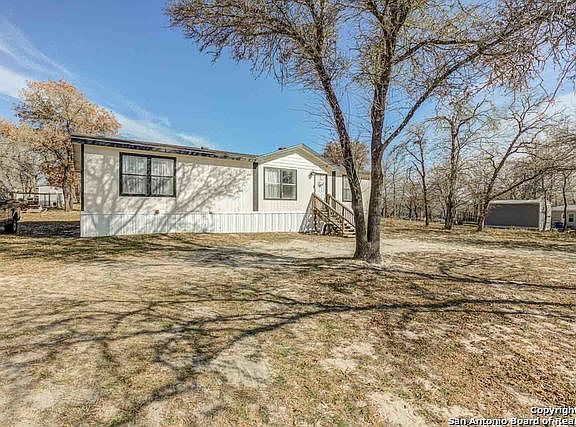 Spacious one-story home featuring 3 bedrooms and 2 full bathrooms in 1,568 square feet located on a one acre lot in Adkins, Texas. Open concept living/dining combo open to the kitchen. Primary bedroom is large with en suite bathroom featuring double sinks and a garden/soaking tub. Large covered deck out back, perfect for entertaining. Storage shed out back as well as a chicken coop. Fridge, washer/dryer & windmill in front of home convey in sale.
