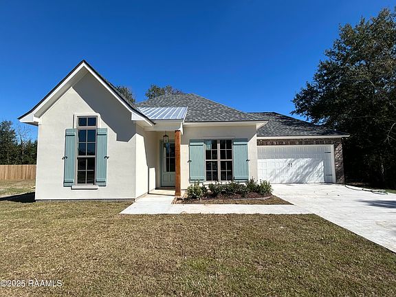 Energy Star Certified Home in Sought-After Beau Savanne Phase III! Welcome to the Joel Heritage II floorplan, a beautifully designed new construction home offering 3 bedrooms and 2 baths in the highly desirable Beau Savanne community off W. Broussard. Step inside to a spacious living room featuring a beam lintel between living and kitchen, ventless gas fireplace, creating a warm and inviting space. The chef-inspired kitchen boasts a gas slide-in range with a custom hood vent, stainless steel appliances, 3cm quartz countertops, under-cabinet lighting, an undermount sink, custom-built cabinetry, separate dining area with gypsum beams, large butler pantry, wet bar area, for both style and function. Luxury vinyl plank and tile flooring flow throughout the home, while the primary suite offers a cathedral ceiling and spa-like retreat with a custom-tiled shower. All bedroom have walk in closets. Outdoor features include a fir wood front door, tongue and grove on patio ceiling, architectural high-definition shingles, fixed wood shutters, up to 10 pallets of sod, and a privacy fence--delivering both curb appeal and outdoor comfort. Plus, enjoy the energy efficiency of a tankless water heater for endless hot water. Don't miss your opportunity to own this stunning home in Beau Savanne Phase III--schedule your showing today!