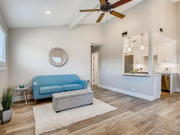 Updated 2 bedroom/1 bathroom townhome in a duplex building at the center of a popular south Austin neighborhood. This home features quartz counters in kitchen & bath, stainless steel appliances w/ chef's stove, tile backsplash, under cabinet lighting, designer plumbing fixtures & premium faux wood floors. Enjoy lower utility bills with energy efficient construction, newer double paned windows & LED lighting/ceiling fans. This home lives large with an open kitchen/dining and huge living room with vaulted ceilings. The kitchen has soft close cabinets and tile backsplash. The master is spacious with double closets and a door leading out to a private deck. The bathroom has a single vanity and tub with tile surround. There are ample windows & 2 in blinds which provide excellent natural lighting. The private, fenced back yard with patio is the perfect place to entertain or simply enjoy your morning cup of coffee. There is a private washer/dryer inside the home with a separate utility room off the master . Premium 78745 location close to the St Elmo Project, all the shops/restaurants in 78704, and near downtown with easy access to Ben White & I35.