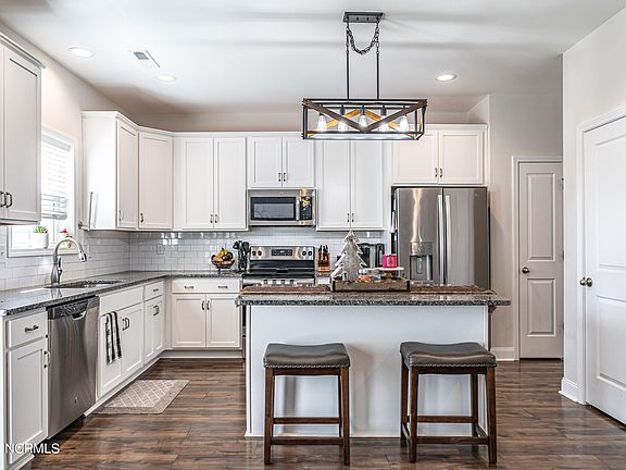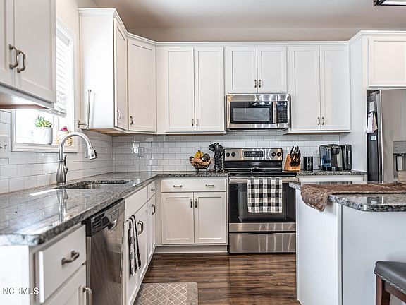 This beautiful, almost new home in The Reserve offers a modern open floor plan, a huge fenced back yard, and is conveniently located to Fort Bragg, Pinehurst, and Southern Pines! The spacious kitchen boasts granite countertops, stainless steel appliances, a large center island and pantry. The adjacent breakfast Nook gives access to the covered back porch. The kitchen opens into the living room that has a cozy fireplace and is a perfect area for entertaining. All of the bedrooms are on the upper level, to include a large primary suite that spans the entire width of home. It has a large walk in closet, and the bathroom offers a soaking tub and separate shower. The interior of the home is newly painted and carpeted, and the back yard is privacy fenced and has been recently planted with Bermuda sod - perfect for an active family and pets! All it needs is you!