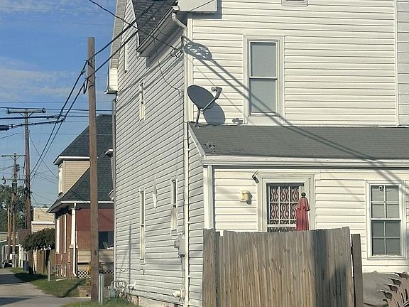 Nice semi-detached home with 3 bedrooms, 2 full baths, both on 2nd level, eat in kitchen, living room, 1 bedroom on main level. The kitchen has lots of oak kitchen cabinets with a double stainless sink and window view. There is a full attic, main level laundry, 6' x 13' covered front porch, 9' x 18' rear storage building, on street parking and 2 car parking in driveway. There is a fenced in yard and the Gas hot water heater was installed in 2025. Included with the property: Refrigerator, natural gas range/oven, built in dishwasher, central air.