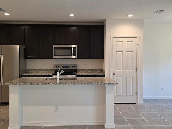 This modern two-story townhome in Blue Springs Reserve offers convenience and functionality for comfortable living. With 2,144 sq ft of space, it features four bedrooms and two and a half baths, making it ideal for families. The first floor boasts an open floor plan connecting the kitchen with solid surface countertops to the dining area, along with a convenient half bath and a 2-car garage. Upstairs, residents will find the plush primary suite with an ensuite bathroom featuring double sinks, along with three additional bedrooms and a full bath with double sinks. The laundry room is conveniently located upstairs for added ease. Strategically located near major highways like the Florida Turnpike, US HWY 27, and SR19, the townhome provides easy access to Central Florida's attractions, Downtown Orlando, shopping destinations, and the Orlando International Airport. Blue Springs Reserve is also zoned for the highly-rated Lake Minneola High School, one of the best high schools in the region.