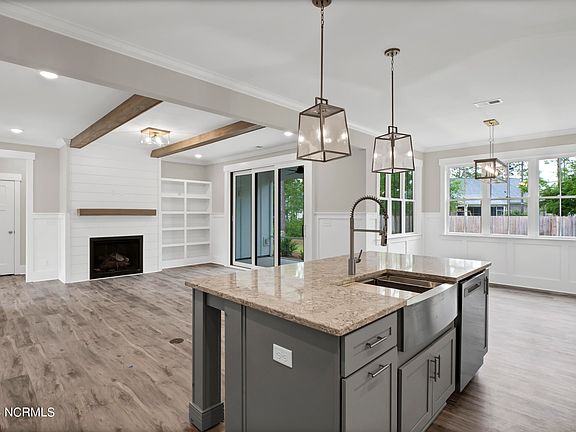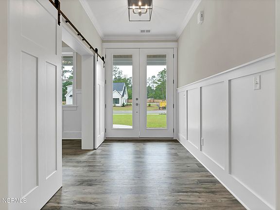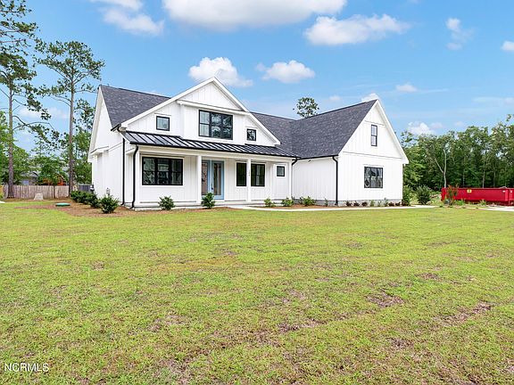 Move in Ready Now! $10k Use As You Choose Allowance. The Calla floor plan has stunning curb appeal on a .55 acre home site. Covered front porch featuring stained or painted columns, tongue & groove ceiling & metal roof accents. Entering the foyer, you'll find a trim package that will blow away your expectations. Home Office opens up right off the Foyer. Open floor plan is wonderful for entertaining or a large family! Great Room has gas fireplace w/ shiplap surround. Telescoping slider door opens up to the Screened-In Back Porch. Kitchen features quartz counters, large island w/ farm sink, tile backsplash, stainless steel appliance package featuring gas cooktop, wall oven/microwave, custom wood cabinets w/ soft close doors & drawers plus under cabinet lighting. Dining Nook right off the Kitchen completes this open 1st floor plan. Massive full walk in Pantry has perfect area for either a coffee or wine bar! Master Suite features grand double door entrance and vaulted ceilings. Master Bath w/ dual sink vanity, custom tile shower w/ rain-head and large WIC w/ wood shelving. Bedrooms 2 & 3 are on the first floor. Upstairs features a Bonus Room & a Game/Media Room w/ private full bathroom! Laundry room is easily accessible from both Master Suite & Mudroom. Mudroom w/ drop zone is easily accessible from both the Kitchen & the Garage. Electrical upgrades featuring structured wiring package & generator lockout panel. Tankless gas water heater. Covered front porch, screened-in back porch, custom patio great for grilling or firepit, sod & irrigation on front, sides & back yard w/ a separate well just for irrigation. $10k USE AS YOU CHOOSE Concession can be applied towards Closing Costs & 365 day Rate Locks! Located only 7 minutes from Topsail Island and Surf City Beaches. Topsail Schools. Crown Pointe includes double sidewalks, pool & clubhouse plus dock, gazebo and day-dock for boating. No cookie cutter details in this custom waterfront community!
