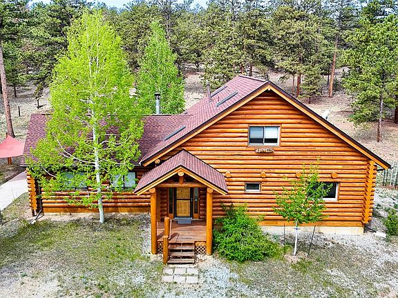 Stunning Log home on a tranquil 2-acre lot in Ranch of the Rockies. This 4-bedroom, 3 bath home offers warm living spaces surrounded by a serene natural atmosphere. The home features a main level primary bedroom, kitchen with stainless steel appliances and custom cabinets, a main-level primary suite, high ceilings, and cozy living areas with radiant in-floor heating and a wood stove. Bathrooms boast beautiful showers with custom stone work and the main level 2nd bedroom features a built-in desk built with two workspaces. Outside, you'll find a detached 2-car garage with a loft and attached deck, a spacious patio, and a backyard ideal for relaxation and entertaining. The property also includes a detached tool/potting shed, and a leveled RV parking space. Located in the heart of the rocky mountains, this one of a kind home is a true sportsman's paradise. The home is just 1 hour from Breckenridge and Monarch Ski areas. It also boasts world class fly fishing at the nearby Dream Stream, middle and south fork of the Platte River, and Antero reservoir. The community, Ranch of the Rockies, maintains a Private Stocked Fishing Pond for all home owners.