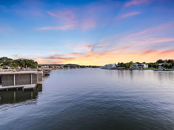 FIRST TIME OFFERED FOR SALE IN HIGHLY DESIRED LEGENDARY ESTATES ON LAKE LBJ. This gorgeous Keith Wing Modern Transitional WATERFRONT custom hm is positioned on the Colorado arm of Lake LBJ & sits high & beautifully on .68 AC w- stunning views of Packsaddle Mtn., Lookout Mtn. & the entire HC as the backdrop to LAKE LBJ. A gorgeous hm & pool w- a gentle sloping backyard feat a Century Oak that shades the pvt beach & fire pit areas down by the massive boat dock. The artfully planned 2-level dock has hydraulic jet ski lifts-platforms for 4 jet skis, kayak spaces, fishing dock, pvt slide into the lake & 2 lg hydraulic boat lifts w- elec boat garage covers. The upstairs deck is designed for entertaining &/or relaxing & enjoying views for days! Completed in late 2020, this 5,054 SQFT hm is open w- a flexible flrpln, lg rms & built for family & friends w-out compromising privacy. The lg metal front door welcomes you into the main LR, DR, Kit & 2nd LR w Wet bar & all rms w- custom black iron windows & collapsible iron doors to the upstairs liv. areas & outdoor kit w- island. Windows have powered shades & smart lighting inside & out. 2 prim stes w- 2 baths on 1st level & upstairs, 3 lg bdrms w- en-ste baths + bunk rm w- 4 built-in bunks & en-suite bath. Rec rm off bunk rm & loft gm rm perfect for play or office -workout rm w- auto black out shades that convert into another 2 bdrm ste. The chef’s kit has a lg pantry & lg laundry & mud rm off 3-car garage w- attached commercial W-D for towels & a golf simulator too!