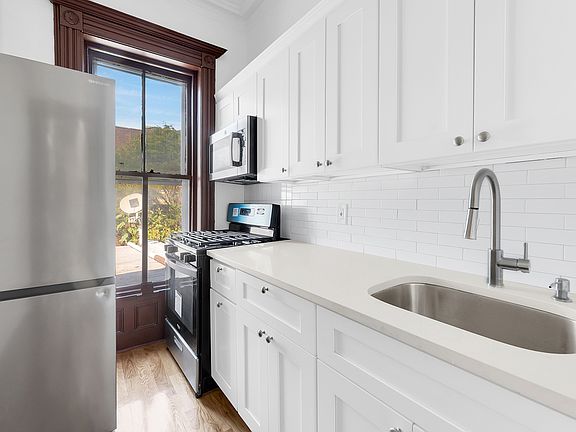 A gracious living area opens into a newly updated kitchen equipped with modern appliances, sleek cabinetry and stone countertops. Down the hall are three well sized bedrooms, each with closets and perfect for a home office. The renovated bathroom features contemporary fixtures and tile. Residents enjoy modern split heating/cooling units for year-round comfort. Call 209 Jefferson Ave your home in Bedford Stuyvesant, a neighborhood celebrated for its historic, ornately detailed homes and vibrant dining scene. The A/C and G trains are nearby, along with Herbert Von King Park, local cafes and shops being just a short commute away.