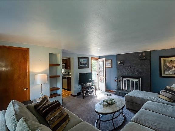 Stone hearth gas fireplaceAbove ground poolFenced-in rear yardLower level family roomCovered front porchStainless appliancesUpdated eat-in kitchen
