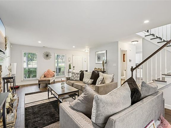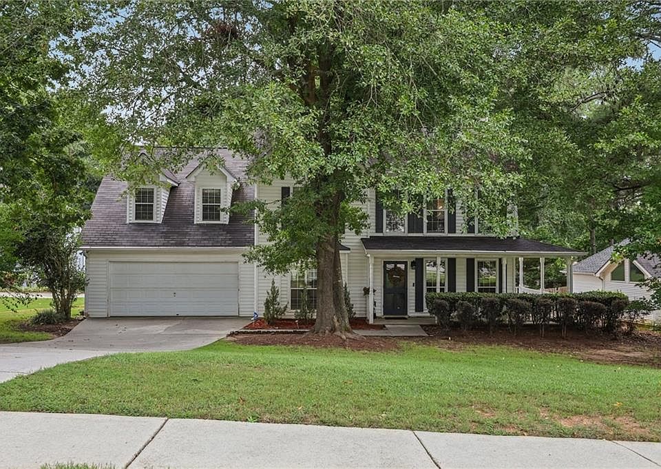 Beautifully Updated Home on a Large Lot with Sprawling Front Lawn in the Eagles Landing area! Welcome to this stunning Southern-style home, complete with a wide front porch perfect for rocking chairs and cool Georgia evenings. Inside, gleaming hardwood floors flow throughout the entire home—no carpet anywhere! The bright living room is filled with natural light and anchored by a stunning stone fireplace. Enjoy cooking your favorite meals in the modern kitchen featuring an oversized island with seating, granite countertops, plenty of white cabinets and stainless steel appliances. A sun-filled dining room area offers French doors to the backyard for easy al fresco dining. A convenient half bath completes the main level. Upstairs, retreat to the spacious primary suite with a tray ceiling and en-suite bath featuring dual vanities, a soaking tub, and a separate glass-enclosed shower. Three generous secondary bedrooms and a full hall bath provide space for everyone! Outside, the oversized level yard offers plenty of green space, while two large patio slabs create the perfect setup for grilling and entertaining—all with the privacy of mature trees. Enjoy community amenities including a playground and pool. Close to shopping, dinning and the expressway. Don't miss your opportunity to tour this home today!