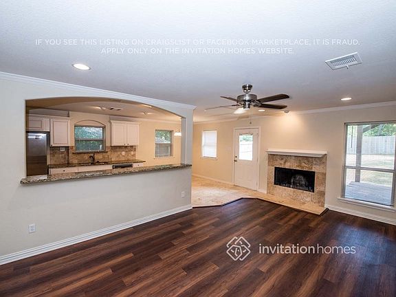 Home Features and Amenities: Air Conditioning, Fenced Yard, Fireplace, Garage, Granite Countertops, Long Lease Terms, Luxury Vinyl Plank, Pet Friendly, Recessed Lighting, Smart Home, Stainless Steel Appliances, Tile, W/D Hookups, and professionally managed by Invitation Homes.