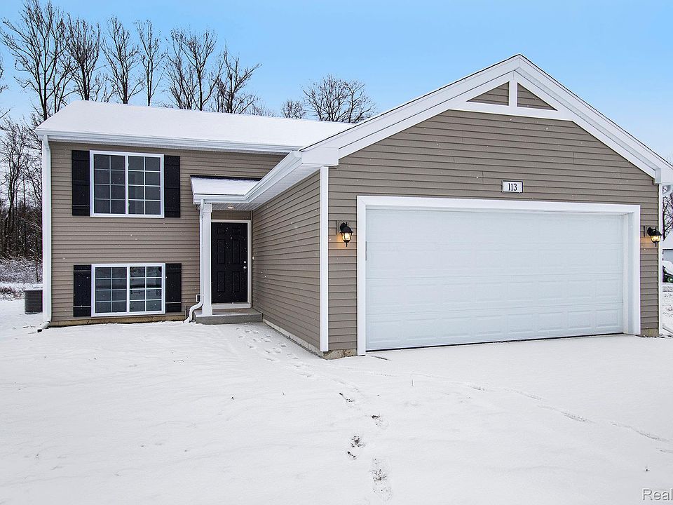 MOVE IN READY HOME!! New construction home in Kingsberry Court, located in the Blissfield School District. Built with RESNET energy smart construction, this home will save the owner over $1,000 a year on energy costs and comes with a 10-year structural warranty for peace of mind. This raised ranch design offers 2,072 square feet of finished living space across two levels. The main floor features an open-concept great room and kitchen, both with soaring vaulted ceilings. The kitchen is highlighted by a 48-inch extended-edge island, white cabinetry, quartz countertops, and a tile backsplash. A sliding patio door off the great room leads to a 10x10 deck, perfect for outdoor living. The primary suite is also on this level, complete with a private bath and a spacious walk-in closet featuring exterior windows for plenty of natural light. The lower level expands your living space with a large rec room filled with daylight windows, three additional bedrooms, each with its own daylight window and a full bath.