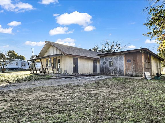 Experience the simple charm of country living with peaceful lake views on just over half an acre in Western Lake Estates. This cozy 2-bed, 2-bath retreat sits right across from quiet Horseshoe Lake, giving you front-porch views of shimmering water and some of the best fishing around. Western Lake is just moments away for boating, jet-skiing, and outdoor adventure—yet you're still only 15 minutes from Weatherford. Gorgeous mature trees are sprinkled across the property, offering natural shade and a true country feel. Evenings are meant to be enjoyed around the fun firepit, perfect for spending time with friends and family. The property is fully fenced with a private gated entrance and includes a dog kennel, a powered shop with generous storage, and a new 12×20 Tuff Shed with a loft for hobbies or extra space. Inside, you'll find vaulted ceilings with bold beams and a cozy fireplace topped with a stunning custom-carved mantle, giving the home warm rustic character from the moment you walk in. Durable LVP flooring runs throughout, and the home offers a comfortable, move-right-in lifestyle—enjoyable as-is, the home is priced with projects in mind for those who enjoy making a place truly their own. It’s the perfect blend of immediate livability and future potential. Relax on the covered front porch while soaking in the lake views and the serenity of a protected greenspace across the road that will never be built on. Country charm, peaceful lake views, and space to make it your own—this inviting property is ready for its next chapter.