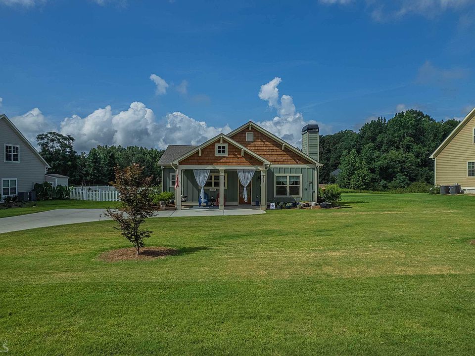 Beautiful Craftsman home with tons of character in Royal Oaks Subdivision. This house is like new and built in 2019. It has a large level lot and a concrete driveway. You can see the love and care that has gone into the home as soon as you see the pretty landscaping. There is a deep front porch overlooking the front yard and a spacious screened porch overlooking the back. Inside you will find an open kitchen, dining and den area with a huge granite island. The floors have luxury vinyl and the den area has a wood burning fireplace. The kitchen has custom cabinets and plenty of counter space with the laundry room room right next to it. Home comes with a full appliance package including the washer and dryer. Down the hall you will find three spacious bedrooms and two and a half baths. The primary bedroom has a double vanity, big shower and walk in closet. At the end of the hall is a door to the screened porch where you can enjoy the butterfly bushes. Energy effecient LED lights, insulation and windows. Everything is on one floor with no steps.