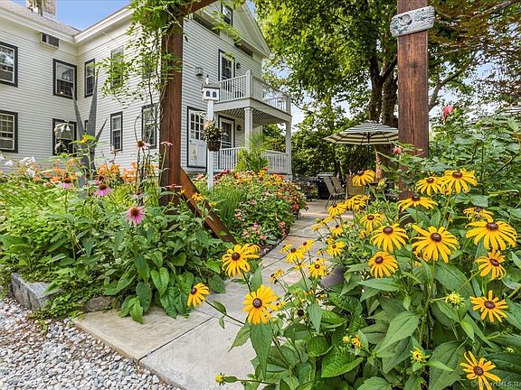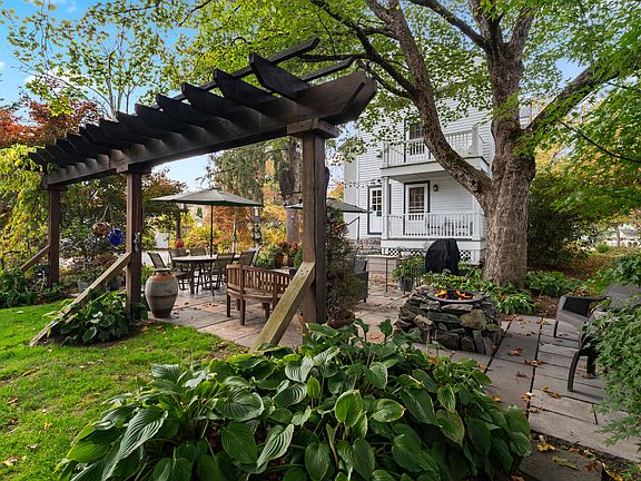 Experience the timeless beauty of New England living! This meticulously restored 1854 Colonial blends historic charm with modern comfort in the heart of Deep River. Every detail has been thoughtfully preserved or reimagined-from the gleaming pumpkin pine wide-plank floors and custom-milled woodwork to carefully selected reproduction hardware that speaks to its heritage. Six fireplaces grace the home, including a magnificent 12' natural stone Rumford. A carefully designed addition in 1987 doubled the home's size while maintaining its period character, offering multiple living and dining spaces with warmth and versatility for everyday living and entertaining. Seven bedrooms, each with its own private bath, ensure comfort and privacy for family and guests alike. The third-floor suite is particularly inviting, offering a wood-burning fireplace, and serene separation-ideal for extended family or as a luxurious guest retreat. A recent kitchen addition provides true in-law apartment flexibility without compromising the home's cohesive design. Lush perennial gardens are softly illuminated at dusk, while a locally crafted white oak pergola anchors a beautiful stone terrace. Enjoy the cast iron fire pit as evening settles in, surrounded by the romance of New England landscape design. Nestled in the heart of Deep River, you'll enjoy village living at its finest-charming shops, riverside restaurants, nearby Long Island Sound, wineries, and cultural venues, all while just two hours from both New York and Boston. This is more than a home; it is a rare opportunity to own a piece of New England history, lovingly preserved and poised for your next chapter. Formerly a celebrated, award-winning New England Bed & Breakfast, the property is thoughtfully designed to be converted back to an Inn with ease. Currently used as a private residence with two Airbnb guest suites accessed by a separate entrance, it presents an exceptional opportunity for multi-use living, income generation, or a return to hospitality.