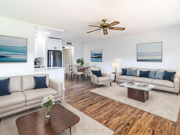 Gorgeous condominium available in the stunning Boca Raton, Florida. Situated within the Boca Century Village West, an exclusive 55+ Plus community, this residence offers an array of desirable amenities. Enjoy heated swimming pools, a theater, transportation services, tennis and pickle ball courts, various clubs, a gym with numerous workout classes, and more. Updated with laminate flooring, white shaker cabinets, and modern stainless steel appliances, this condo exudes contemporary charm. Its open-concept layout seamlessly integrates the living room, dining area, and kitchen, providing the perfect space for entertaining guests. Nestled in one of South Florida's premier cities, this condo is just 9 miles away from the beach and can be rented right away per Board. Virtual Staging. "Century Village Boca Raton is like a small city. It is made up of 16 condominium associations spread over approximately 700 acres on the shores of Lake Windermere. There are 105 residential buildings, 2 synagogues, a Clubhouse and theater, 17 outdoor swimming pools, 1 indoor pool, 12 tennis courts, bocce, shuffleboard, fishing, and much more. All residents are offered classes, clubs, a library, meeting rooms, a party room for club or condominium association