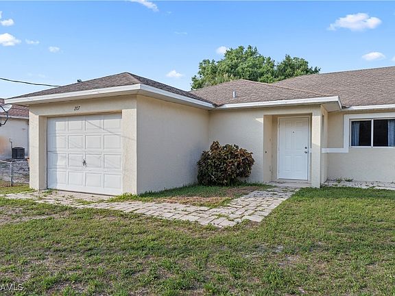 Here's a well-maintained duplex located in the heart of Lehigh Acres, FL. Each unit offers 2 spacious bedrooms and 2 full bathrooms, complemented by a 1-car garage. The interior feature 207 is tile flooring throughout on on side of the duplex, 209 side is wood Laminate in all bedrooms and living area , ensuring easy maintenance and a clean aesthetic. The open-concept living areas provide a comfortable space for both relaxation and entertainment.