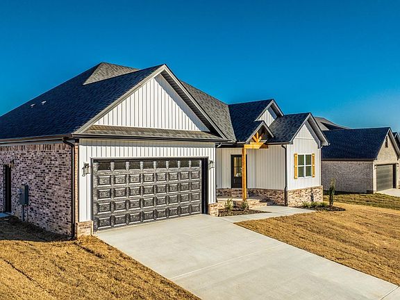 Welcome to this stunning brand new 4 bedroom, 2 bathroom home offering 1,962 sq ft of modern comfort and timeless style. No one has ever lived in this beauty! Step inside to an open concept layout featuring a spacious living area, custom trim accents, and a gorgeous electric fireplace feature wall. The kitchen boasts quartz countertops, stainless appliances, a large island, and floating shelves with under lighting. The split floor plan provides a private primary suite with a spa-like bathroom including a walk-in shower, freestanding tub, and double vanity. Enjoy covered front and back porches, beautiful curb appeal with wood accents, and a large backyard overlooking open fields, perfect for peaceful evenings. This new construction home is move-in ready and located in a desirable area close to schools, shopping, and dining.