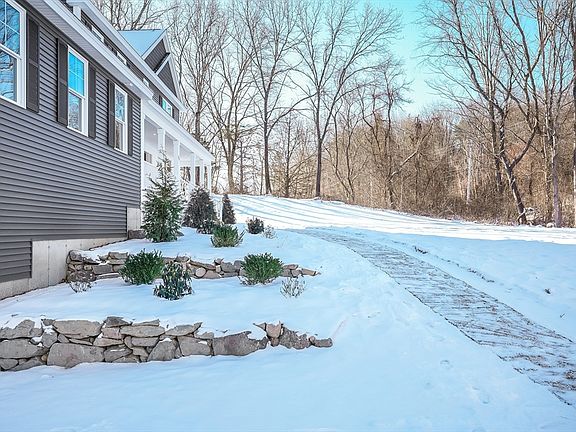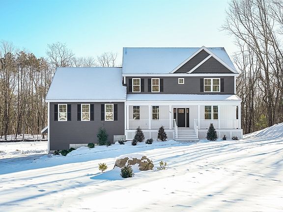 Builder offers $20,000 towards closing cost with acceptable offer. Set on over two private acres, this newly constructed Colonial offers refined luxury and timeless craftsmanship throughout. The sun-filled open floor plan features hardwood floors, an elegant coffered-ceiling dining room, and a spacious living area with fireplace and seamless access to a oversized composite deck. The chef’s kitchen is thoughtfully designed with quartz, an expansive island, high end appliances, walk-in pantry, and a custom wet bar with wine refrigeration, ideal for upscale entertaining. Two beautifully appointed primary suites provide exceptional flexibility for multigenerational living or guests, complemented by two additional bedrooms and a private home office. Notable features include a walk-out basement with mudroom entry, dual high-efficiency heating systems, central air, tankless hot water, and a two-car garage.