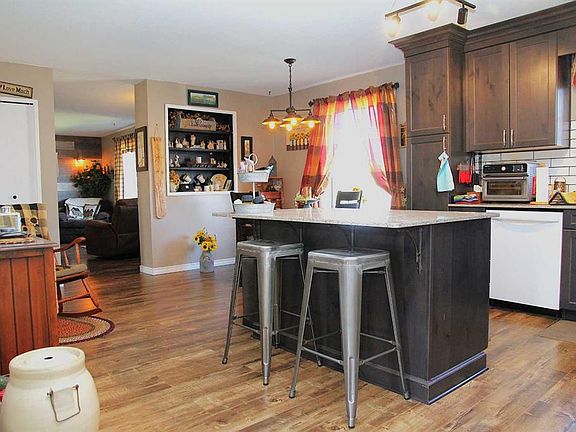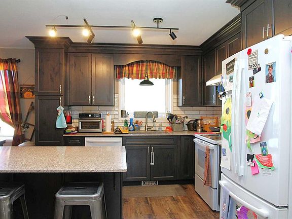 This well maintained 1984 bungalow combines comfort and updates in a prime location near schools, the rink, and downtown. The main floor features two bedrooms, a full bath, spacious kitchen with solid surface countertops (updated 3 years ago), large dining and living areas, and main floor laundry. The primary bedroom opens to a newly built deck, and access to the backyard. Downstairs offers a family room with gas fireplace, office space, an additional bedroom with 3-piece bath, storage rooms, and convenient direct entry from outside. Recent upgrades include easy-care laminate flooring, newer HE furnace, updated entry steps, and insulated garage doors on the double car (26' X 24") heated garage. Back lane access and RV parking along the garage finish off this nice package.