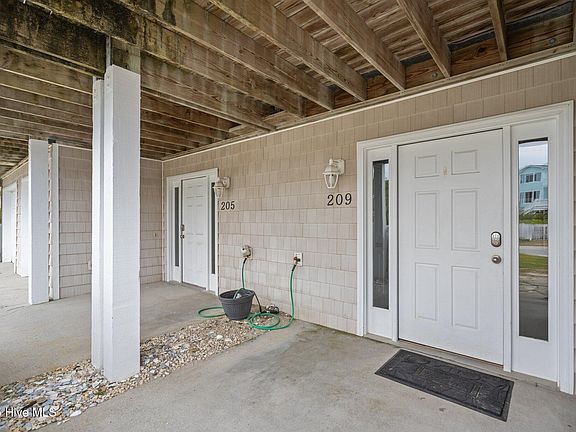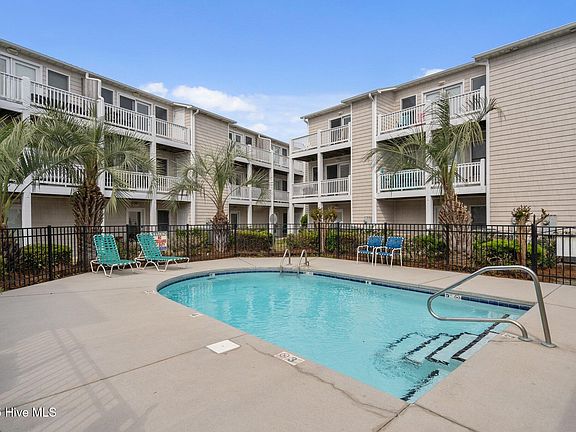 This beautifully maintained, fully furnished 3-story townhome offers ocean views from two of its four balconies and is just a short walk to the public beach access. Located only three blocks from charming downtown Kure Beach, you'll enjoy easy access to shops, restaurants, the oceanfront park, and the iconic fishing pier. Inside, the main living area boasts an open floor plan with a spacious living room, a dedicated dining area, and a stylish kitchen featuring granite countertops, a tile backsplash, a coffee bar section, and a pantry. The primary suite is a true retreat with its own private balcony overlooking the community pool, an en-suite bath with a marble countertop, and a generous walk-in closet. Two additional bedrooms share a front porch with beautiful ocean views and have access to a full hall bath with a stackable washer and dryer for convenience. On the ground floor, you'll find a fourth bedroom and full bath with direct access to a covered back porch—ideal for guests or a private office setup. Each level includes a storage closet off the patio or balcony for added functionality. Whether you're looking for a full-time residence, vacation getaway, or investment opportunity, this townhome has it all—location, comfort, and coastal charm.