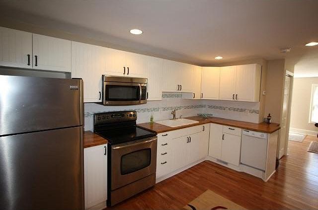 Almost new, everything custom! Custom 7' white trim, 6 panel doors, knock down ceilings, and tiled bathrooms. Includes new siding, new carpet, new hardwood floors, new A/C, new paint and features butcher block counters!