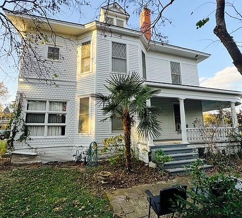 Four-bedroom two bath homeDouble staircaseWrap-around galleried porchTiffany-stained glass front window