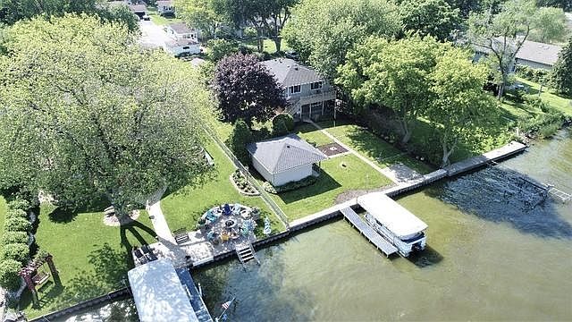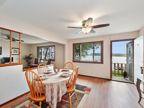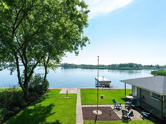Great opportunity on the chain of lakes!!! 75' of lakefront on Fox Lake with relaxing and peaceful panoramic views. No flood insurance required!! Home offers 3 bedrooms and 2 baths. Living room, dining room with beautiful views of lake. Walk-out lower level features a family room, wet bar, with great views of lake. New flooring in kitchen, dining room and family room. Lower level bath has numerous updates. 2 car attached garage. 1 car detached garage for toys. Enjoy the sunrise with your morning coffee on the upper deck or lower patio. Fully fenced yard, professionally landscaped water front retreat!! Shore station with cover, electric wheel, 3 section pier. Waterfront restaurants, fireworks displays along with many other lake activities to enjoy!! Start living the lake life!!!!