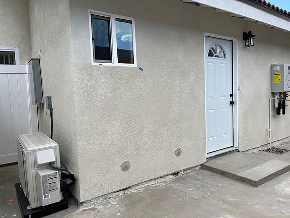 Side yardNew interior paintVertical blindsInside laundry roomWood and tile floor