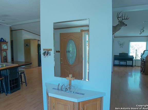 Come see this beautiful 4 BR 3 FBath home situated right outside the quaint town of Boerne Texas. The dual living areas warmly welcome all who enter. Ample natural light brightens this spacious open space floor plan. The living room with fireplace flows nicely with the kitchen and breakfast nook. The kitchen boasts a convenient food prep island and custom cabinets. The outdoor living area includes a spacious deck, grill area and swimming pool. The large 1/2 acre lot allows for plenty of space for gardens, storage, an oversized dual vehicle garage/workshop and even a few farm animals. Storage shed (117 SQFT) conveys. Chicken coop, rabbit hutches, shelving in garage do not convey.