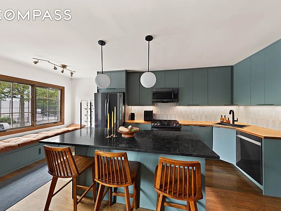 Welcome to 209 Onderdonk Avenue, an exquisite brick corner townhouse nestled in the heart of Ridgewood. This rare single-family residence combines timeless architectural charm with modern sophistication, offering a lifestyle of both comfort and versatility. Spanning twenty feet in width and filled with natural light, the home features three bedrooms, a dedicated home office, two full bathrooms, two parking spaces, and a beautifully landscaped private garden. The parlor floor sets the tone with refined hardwood flooring and an expansive open layout, anchored by a chef s kitchen with a grand island, custom cabinetry, quartz countertops, and a comprehensive range of appliances. Just beyond, a skylit bathroom with a glass-enclosed rain shower enhances the sense of luxury, while two serene bedrooms overlook the lush backyard. One of the bedrooms opens directly into the garden, an enchanting outdoor retreat accented by professional landscaping, fruiting trees, complete with an advanced irrigation system for seamless year-round garden upkeep. On the garden level, the spacious master suite offers an elegant en-suite bath and private access to the multi-tiered backyard. Designed for both entertainment and relaxation, the outdoor space transitions seamlessly from a lower level perfect for alfresco dining and summer barbecues to an upper tier surrounded by peach, fig, and raspberry trees, anchored by a charming garden table perfect for relaxation. This level also provides extensive storage with custom organization, a laundry area, and a garage converted into an artist s studio. With its own private street-level entrance, the garden level can function independently and transformed into an income-producing rental or a comfortable in-law suite, adding exceptional flexibility. Beyond its beauty, the home offers an exceptional investment opportunity, with features designed for both comfort and future growth. A solar panel system ensures sustainability and long-term savings, while R5B zoning allows for up to 2,079 square feet of buildable space, offering future opportunities to expand the rear of the property or add additional floors. Low annual taxes of $4,580 further underscore the value of this remarkable residence. Situated at the crossroads of Queens and Brooklyn, Ridgewood offers a unique blend of history and trendsetting culture. Beloved institutions like Rudy s Bakery and Gottscheer Hall share the neighborhood with acclaimed new destinations such as Rolo s, Evil Twin and Bridge & Tunnel Breweries, Caf Plein Air, and Julia s. The celebrated venue Nowadays provides 16,000 square feet of indoor and outdoor space for everything from laid-back afternoons to vibrant nightlife, while the Vander Ende Onderdonk House, the city s oldest surviving Dutch stone home, operates as a museum and continues to host cultural events year-round. With proximity to the L and M subway lines, the location provides effortless access to both Manhattan and Brooklyn. Whether you are seeking a peaceful urban retreat, a dynamic space for entertaining, or a forward-thinking investment, don t miss the opportunity to make this exceptional Ridgewood home your own!