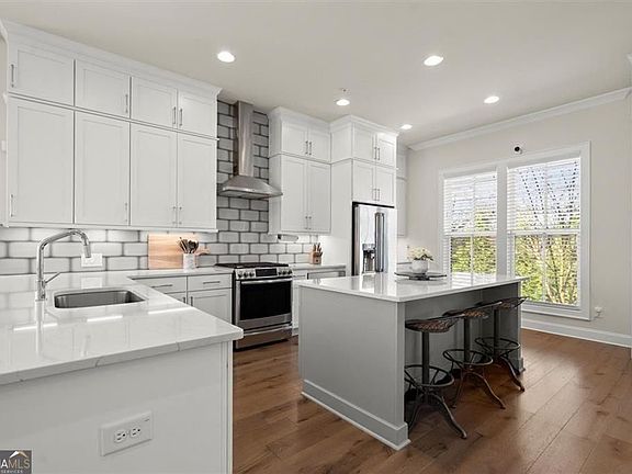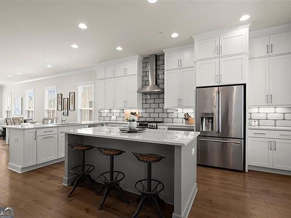 Discover the epitome of upscale living in this stunning townhome, nestled perfectly between the Avalon shopping district and Downtown Alpharetta City Center. Enjoy the finest in dining, boutique shopping, free concerts, food/music festivals and seasonal farmer's markets, all within easy reach. Nestled in the prestigious sought after gated Chelsea Walk community, this stunning end-unit three story townhome offers the perfect blend of privacy, luxury and convenience, with a large fenced dog park, private pocket park, and direct and secure access to the Alpha Loop. This townhome offers plenty of natural light, 3 bedrooms, 3 and 1/2 baths, and over 2,500 square feet of luxurious living space. The open floor plan seamlessly connects the kitchen, family room, and sunroom/office creating a spacious and inviting atmosphere. The gourmet kitchen features stainless steel appliances, upgraded white cabinetry, large island, stone countertops and a sleek open design perfect for hosting gatherings. The oversized primary bedroom provides a serene retreat, complemented by a spa-like master bath with upgraded oversized frameless glass shower and spacious custom closet. Two generously sized secondary bedrooms offer ample closet space and each have their own full ensuite bathroom. It also offers a private deck, three extra large storage closets, fireplace, powder room on main, laundry on upper, HOA maintained landscape and lawns, and an unbeatable location with under half a mile walk to both Downtown Alpharetta and Avalon. Don't miss this opportunity!