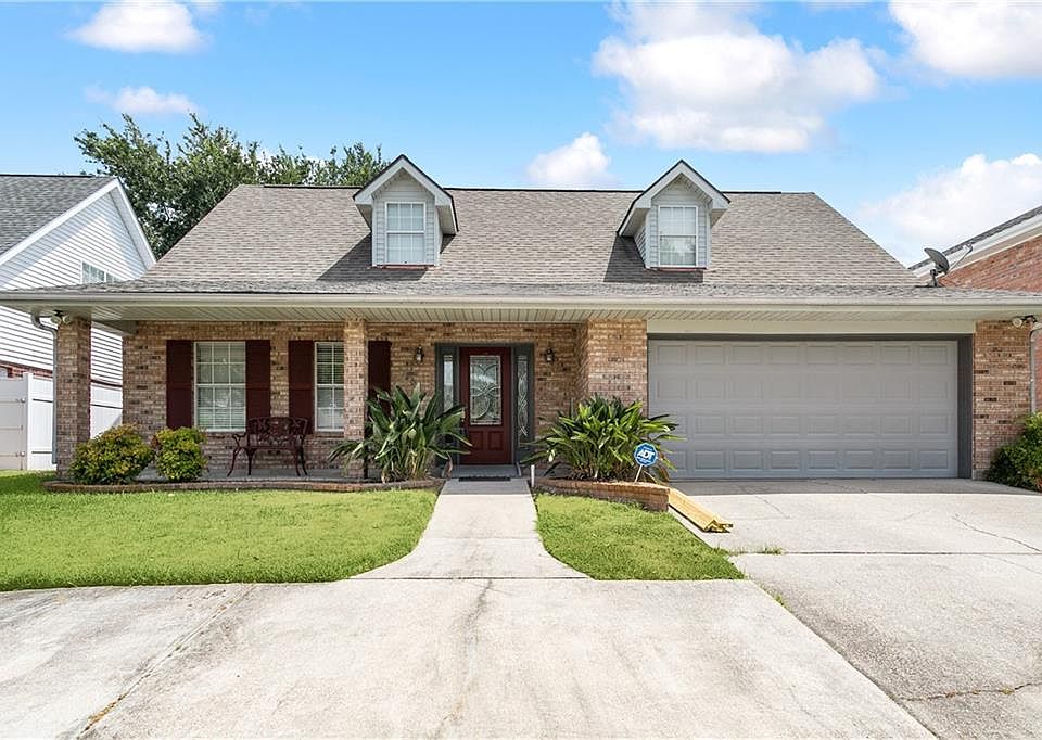 Year round vacation in this charming 3 bedroom 2 1/2 bath home nestled in the heart of Eden Isles. Great room has a cathedral ceiling & cozy fireplace. Kitchen has stainless appliances, granite countertops with a separate dining area and a nice size pantry. Primary suite downstairs w/bath & custom closet. Lower level also has half bath & indoor laundry. Two bedrooms & 1 full bath upstairs. Primary, great room, dining & kitchen look out to the incredible outdoor views. Fenced patio area w/ beautiful inground pool overlooking water with outdoor bathroom & shower. Navigable water, fishing & crabbing from dock. Circular driveway & double garage. Easy access to I-10.