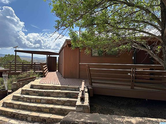 Discover this one-of-a-kind hexagonal custom Lindal Cedar home which offers an exceptional combination of craftsmanship and scenery, situated on three lots overlooking the breathtaking Mimbres River Valley and the majestic Black Range mountains. Step into over 1700+ square feet of living space on the upper level featuring an open-concept living/dining/kitchen area with a cathedral ceiling. The home is adorned with exquisite cedar finishes throughout, infusing every space with warmth and timeless natural beauty. There are two bedrooms and baths on the upper floor, and a charming spiral staircase leads to a spacious full basement below, with a workshop and utility area plus another bedroom and bathroom. Expansive wooden decks partially wrap around the upper level of the home offering the perfect space for entertaining and relaxation. This special property is in the beautiful Mimbres Valley, approximately 1/2 hour from historic Silver City, NM.
