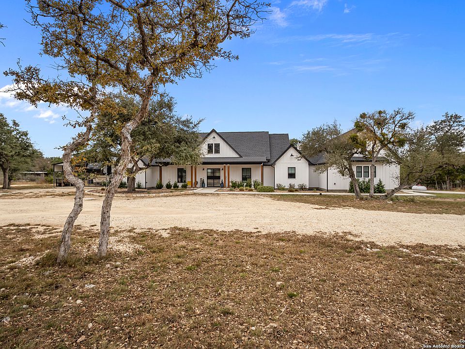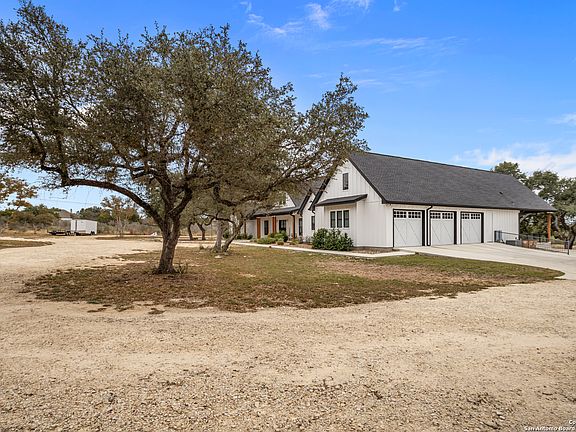 Welcome to your Hill Country haven in beautiful Boerne, Texas. This impressive 3 bedroom, 3.5 bath home offers 2,600 square feet of comfort, function, and warm hospitality. The spacious island kitchen is the heart of the home, and it opens into a large, airy floor plan that is perfect for gatherings, daily living, and relaxed entertaining. The home features ceramic tile and LVP flooring throughout, creating a clean, cohesive, and low maintenance interior. The oversized master suite feels like a private retreat. It includes a full bath with double vanity, a separate shower and tub, and two generous walk in closets. A dedicated office provides a quiet place to work or unwind. Outdoor living is truly special here. The covered patio features a fireplace and ceiling fan, creating an inviting year round space for relaxing with friends or enjoying peaceful evenings. The large backyard includes carports, a shed, and a 24 by 36 horse stable with 2 stalls, 1 tack room, a shop, and a 12 by 24 center aisle, giving you space for horses, storage, and equipment. The RV amenities are exceptional with a 30 by 55 RV cover that includes parking, storage, and full hookups, along with a matching metal design that complements the property. There is also a secure black iron fenced area that includes lighting, outlets, a ceiling fan, and a 15 by 8 storage room with a roll up door. Pet lovers will appreciate the built in dog run with pet turf and a climate controlled 10 by 8 pet room with a doggie door. Utility features include spray foam insulation in the exterior walls and attic, a spray foamed well house, 6 inch exterior studs, and wiring ready for an electric car. The home has a transfer switch installed for generator backup, soffit lighting and plugs, five hose bibs, and is pre plumbed and pre wired for an outdoor kitchen and a hot tub. The property is fenced and cross fenced with two automatic front gates. This allows plenty of room for horses, RVs, hobbies, or a flexible outdoor lifestyle. Living in Boerne means enjoying the charm of a Hill Country town known for historic streets, local shops, parks, and a relaxed community feel. The location blends natural beauty with everyday convenience, giving you the best of peaceful living with easy access to amenities. This home offers space, comfort, and modern upgrades along with a lifestyle that feels both welcoming and elevated. It is a rare find for anyone seeking room to grow while enjoying the beauty and tranquility of Boerne.