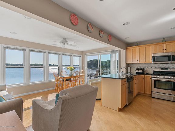 Experience the beauty, tranquility and sweeping views of the breathtaking Manasquan River. Nestled in a cove like setting, overlooking Monmouth county, its a boater's dream home & great condo alternative. This charming 2 bdrm/1-1/2 bath ranch has been updated with a neutral, coastal color palette and is move in quality. Kitchen with water views, stainless steel appl. and granite countertops. Master bedroom w/ slider opens onto the composite deck facing East...glorious sunrise's and sunset's await you! Other features incl: Updated bath w/ Granite cntrtops, tiled shwr wall & floor. Gleaming wood floors. Lower level w/ 1/2 bath has a 3 season enclosed porch. Unfinished, attic with expansion possibilities. Steps to the Manasquan River Marina. Close to beaches, Rte 70, 195, GSP, shopping, etc