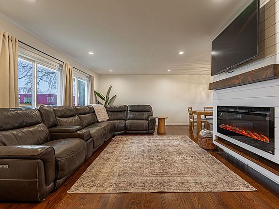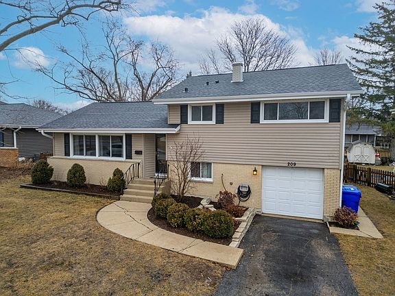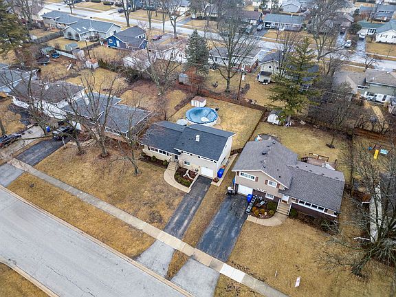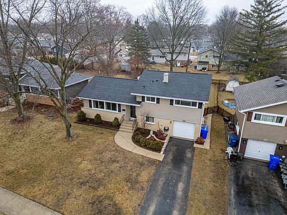 Beautifully updated and modern split-level home in Wheaton featuring sleek hardwood floors throughout and a freshly painted interior. The remodeled kitchen shines with white shaker cabinets, quartz countertops, a stone backsplash, and newer appliances - including a smart fridge added in 2024. Both bathrooms have been updated, with the full bath remodeled in 2024 and the half bath in 2021. Enjoy cozy evenings in the living room with a built-in LED shiplap-style fireplace. Major updates include a new roof, soffit, fascia, gutters with guards, furnace, and air conditioner - all completed in 2020 - plus a new washer and dryer in 2023, with new living room windows also installed in 2020. Step outside to your backyard oasis, featuring a spacious paver patio, a paver flower bed retaining wall, a fully fenced yard, and a heated above-ground pool with a new pool heater (2022) and brand-new liner (2024) - perfect for relaxing or entertaining. The home also offers plenty of attic space for storage, and the attached garage is equipped with 220 amp outlets - ideal for workshop tools, electric vehicle charging, or future home projects. Directly across the street, enjoy the added benefit of a park and baseball field right outside your front door, offering green space and recreation just steps away. Located in highly-rated District 200 schools and just minutes from expressways, shopping, and charming downtown Wheaton, this move-in-ready home offers modern updates inside and a backyard designed for enjoyment.